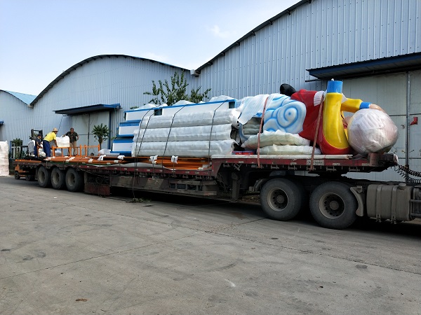 經(jīng)過多日的疫情與雨季的肆虐,今日天氣晴朗,多套游樂設備今日統(tǒng)一發(fā)貨。今日發(fā)的游樂設備有花果山漂流、飛天史努比、24座豪華轉(zhuǎn)馬共三套,發(fā)往目的地新疆。