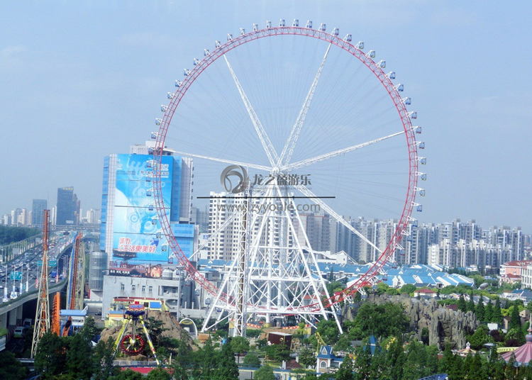 龍之盈摩天輪是每一個大型游樂園里必不可少的一款游樂園設備,我們所知道的大型游樂設備摩天輪,又稱觀覽車,是一種大型轉輪狀的機械建筑設施,上面掛在輪邊緣的是供乘客乘搭的座艙。乘客坐在摩天輪慢慢的往上轉,可以從高空俯瞰四周景色。最常見到摩天輪存在的場合是游樂園、主題公園與園游會,也是游樂場的地標性景點。每個人的青春里都有摩天輪的身影,代表著夢幻、意味著放飛、彰顯著個性,正值年少或者回味當年,坐一坐摩天輪定會讓人思緒飛揚。