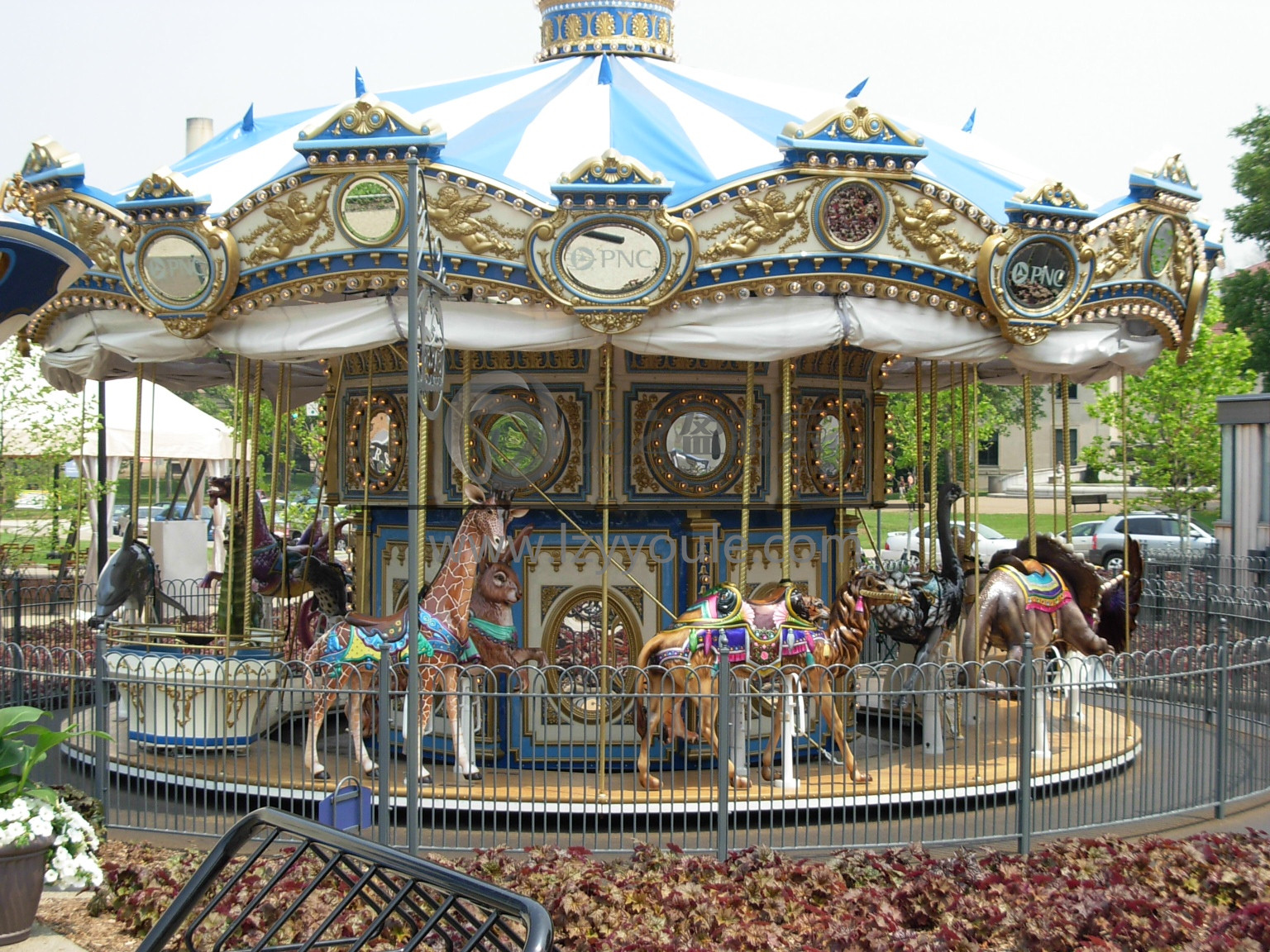 所以在豪華轉馬外觀設計時,造型美觀、靚麗、色彩絢麗,有鏡子和燈光裝飾,夜晚格外漂亮,豪華轉馬擁有富麗堂皇的外觀,精美華麗的裝飾內涵,磅礴的氣勢、絢麗的燈飾和高貴典雅的游樂設備造型,猶如一頂旋轉的皇冠。當轉馬旋轉的時候,游客乘坐在色彩斑斕、形態各異的轉馬上奔騰跳躍、四蹄生輝,仿佛置身仙境般的童話世界,猶如馳騁在草原,瞬間的夢想由此開始向無窮的天際放飛。