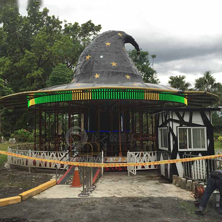 旋轉(zhuǎn)木馬是游樂場(chǎng)里常見的一款兒童游樂設(shè)備,伸手大人與小孩的喜愛。由于技術(shù)的發(fā)展,傳統(tǒng)的旋轉(zhuǎn)木馬延伸出許多造型新奇的新型轉(zhuǎn)馬,今天就為大家介紹一款由龍之盈生產(chǎn),大陸與臺(tái)灣攜手設(shè)計(jì)的一款新型轉(zhuǎn)馬-飛天魔帽,采用了許多前沿的技術(shù),加入了許多新的玩法,接下來就隨著開啟一段奇妙之旅吧。